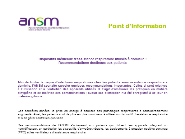 ANSM - Recommandations pour l'utilisation d'un système d'humidification