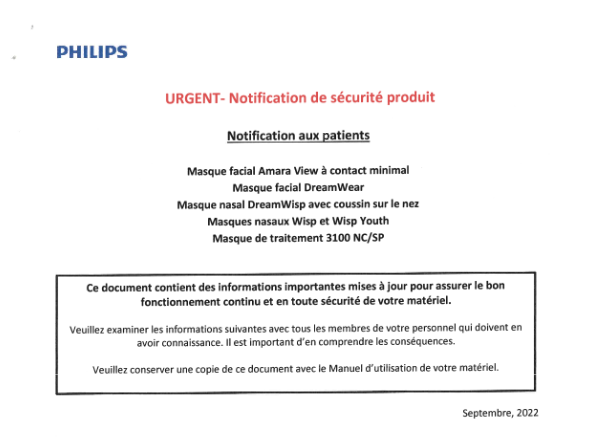 PHILIPS - Notification de sécurite - Masques avec attaches aimantées